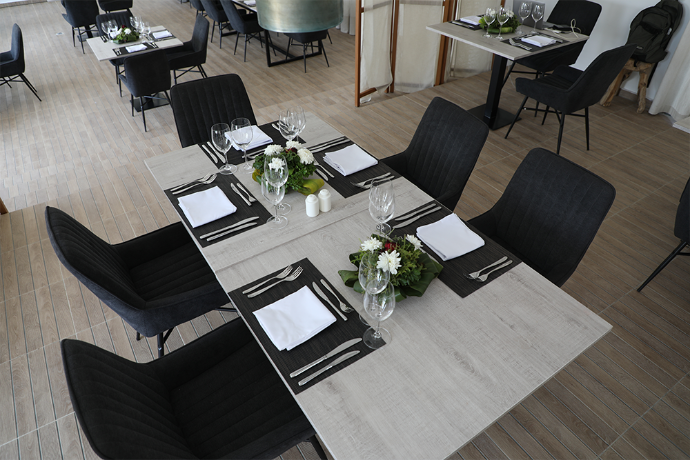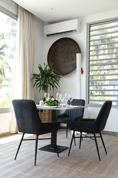 Nous vous invitons à vous régaler dans un cadre trendy et élégant. Le restaurant offre un lieu de vie idéal pour un repas convivial, une savoureuse cuisine Africaine et Européenne avec une magnifique vue sur notre piscine.